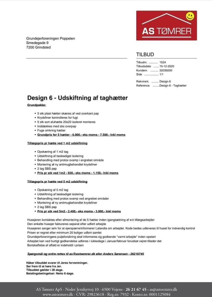08. Oct 2020Design 6: tilbud på udskiftning af taghætter mv..